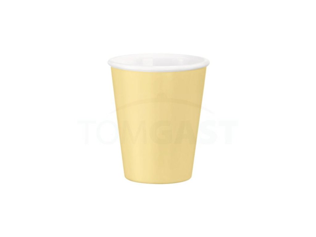 Aromateca šálek v pastelově žluté oživí váš jídelní stůl. Díky svému materiálu jsou šálky odolné vůči odštípnutí a poškrábání a poskytují naprostou hygienu. Kolekce je ideální pro použití ve školských či zdravotnických zařízeních.