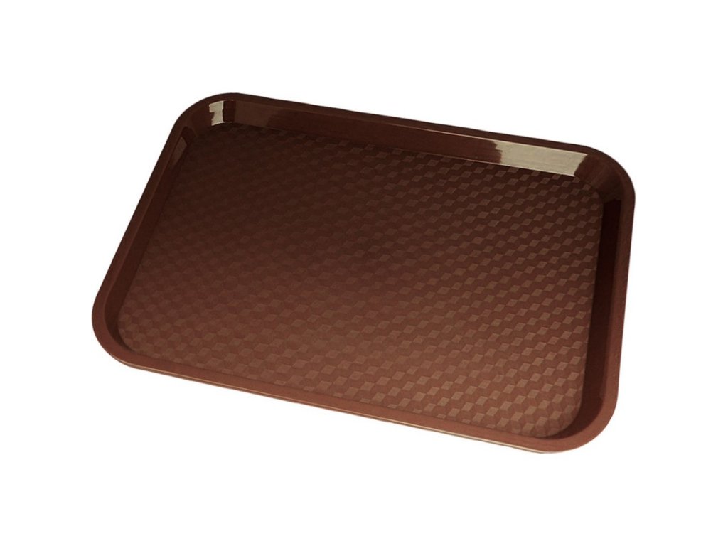Jídelní podnos v hnědém provedení se hodí do všech typů jídelen, jako například rychlá občerstvení, školy a školky. Díky zdrsněné povrchové úpravě pomáhá podnos strávníkům v tom, aby jim nesené jídlo neklouzalo a lépe se jim tak s plným podnosem manipulovalo. Vhodný do myček na nádobí do teploty max. 80 °C.