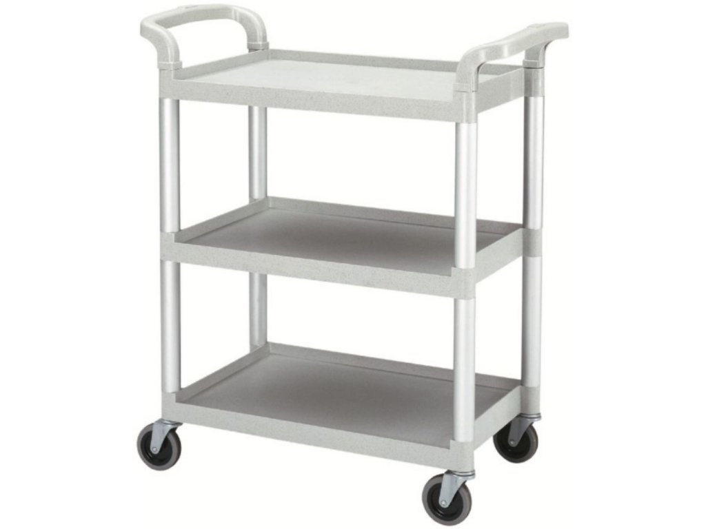 Vozík má tři polypropylenové police odolné proti znečištění. Dodává se nesmontovaný, aby se minimalizovaly přepravní náklady.