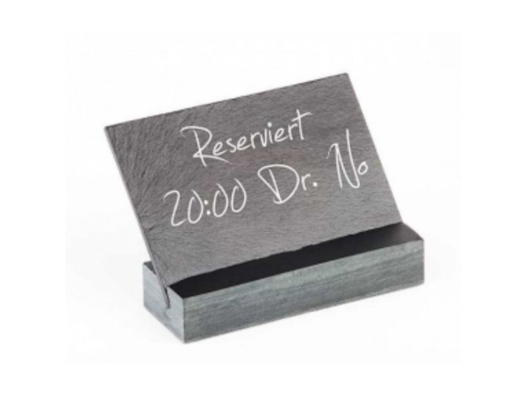 Elegantní břidlicová tabulka s podstavcem na popisování pomocí křídy nebo omyvatelným perem. Jednoduše se udržuje a čistí. Skvěle se hodí na restaurační stoly pro podání jakýchkoliv informací vašim hostům (menu, speciality dne, akce atd.). Navíc působí vkusně, jídelní stoly rozzáří a dodá jim šmrnc.