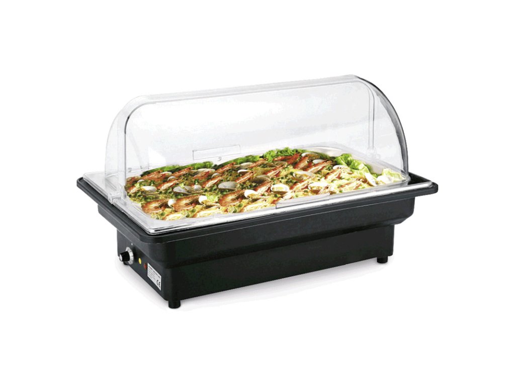 Elektrický chafing s regulačním termostatem pro gastronádobu GN 1/1 (65 mm) se skvěle hodí pro podávání různých snídaňových rautů či jinde, kde je třeba jídlo teplé. Roll-Top víko usnadňuje otvírání chafingu a podávání jídla vám i vašim hostům.
