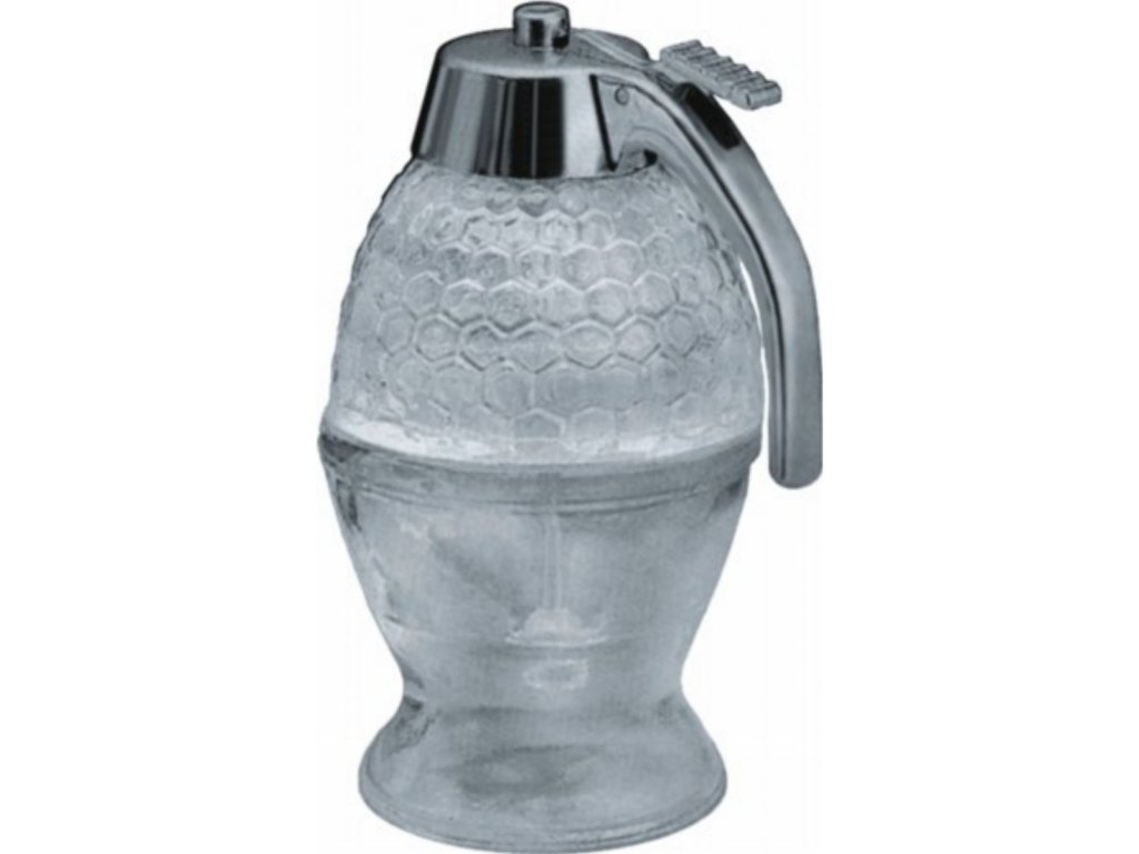 Tento dávkovač na med je opravdový bestseller. Tělo dávkovače je ze skla. Skládá se ze dvou částí. Z vrchního zásobníku (s reliéfem včelí plástve) a spodní, která slouží jako základna pro usazení dávkovače a zároveň jako okapová miska. Stiknutím tlačítka na rukojeti dávkovače se zvedne kovová trubička, která ve spodní části slouží jako špunt a tím se uvolní cesta našemu zlatému pokladu a vy si můžete jednoduše dávkovat.
