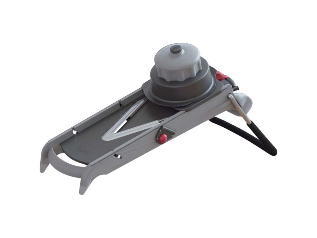 - kompaktní mandolína s integrovanou ostrou čepelí ve tvaru V