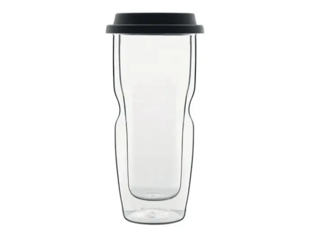 Ideální šálek pro velkou kávu s sebou na cesty v silném dvoustěnném borosilikátovém skle. Jeho ergonomický design umožňuje pohodlné uchopení. Dvouvrstvý kelímek zůstane chladný na dotek (takže se nepopálíte) a déle horký uvnitř. Nepropustné silikonové víko udržuje kávu teplou a zabraňuje vylití obsahu.Borosilikátové sklo je vysoce odolné vůči tepelným šokům. Jeho chemické složení nemění úroveň kyselosti žádné tekutiny, a proto je jeho použití velmi bezpečné. Podtlaková oblast mezi dvěma stěnami umožňuje tepelnou izolaci a zabraňuje srážení tekutiny na vnějším povrchu.