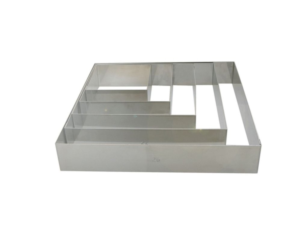 Čtvercová forma je vyrobena z nerezové oceli, která představuje odolný materiál. Snadno se s ní vykrajuje i s vyjímáním z těsta, lze ji také plnit a jednoduše se skladuje. Využijete ji na různé mini dorty, cukroví i želé. Hodí se prakticky v každé restauraci, cukrárně, jídelně, ale i v domácnostech.