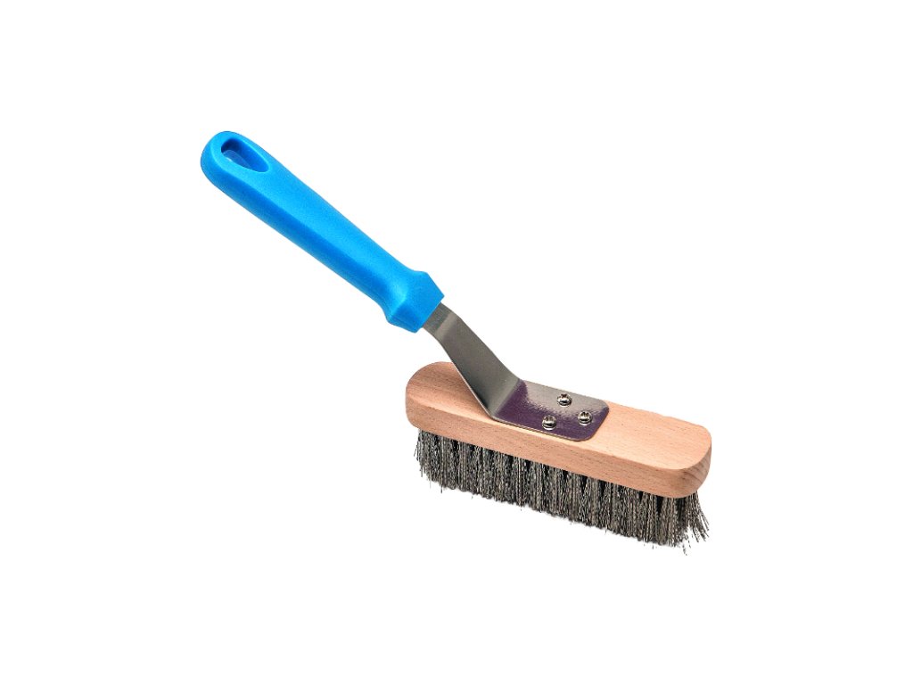 Tento kartáč se štětinami z nerezové oceli se skvěle hodí pro čištění kamenných pecí na pizzu či jiných grilů.