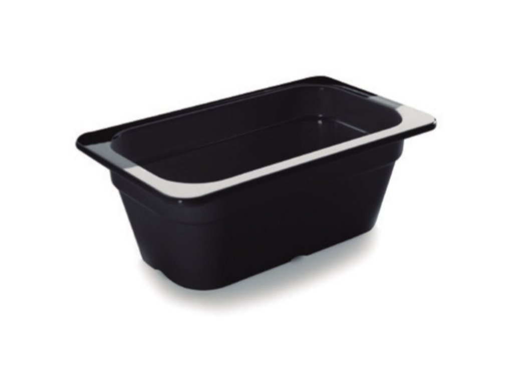 Hledáte elegantní způsob, jak prezentovat nebo vydávat svá jídla? Pak je tato melaminová gastronádoba tou pravou volbou. Její půvabná černá barva doplní váš bufet a nechá vyniknout podávaná jídla. Hodí se také k přípravě k studené kuchyně. Melaninový materiál se vzhledem podobá porcelánu, je však lesklejší a odolnější proti nárazu. Vyrobeno shodně s normou EN 631.