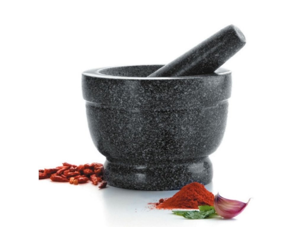 Kromě toho, že je hmoždíř pěkným designovým kouskem každé kuchyně, představuje i skvělého pomocníka pro drcení koření, bylinek či jiných pochutin.