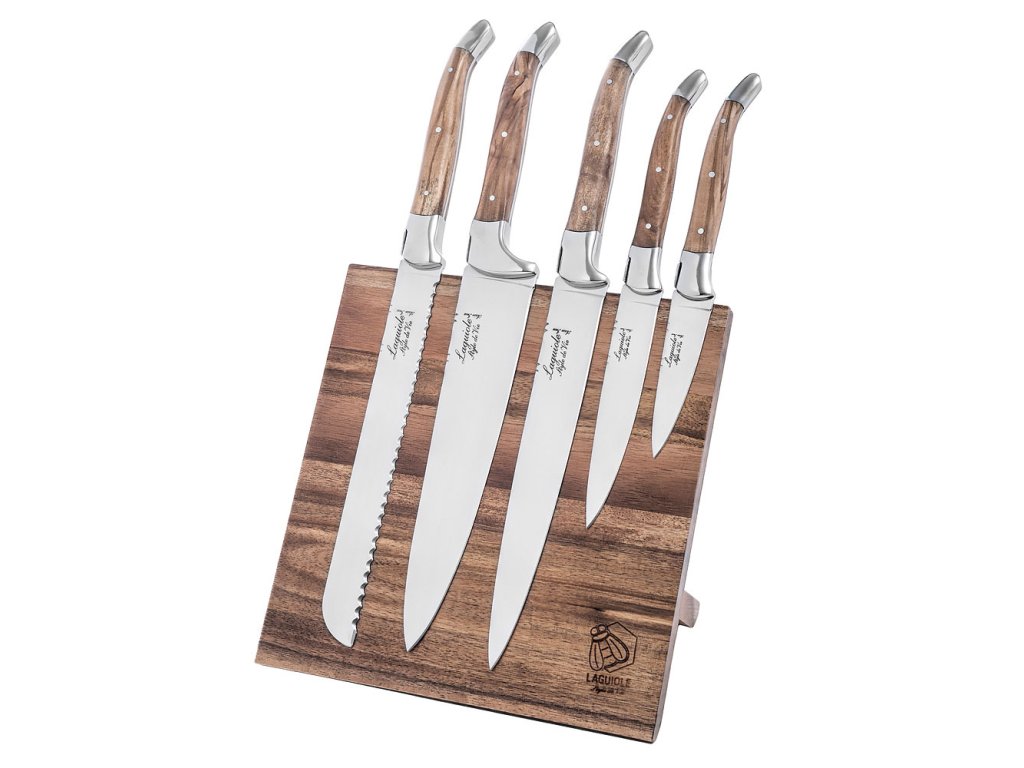LAGUIOLE Luxury - sada nožů s magnetickým stojanem - rukojeť z olivového dřeva