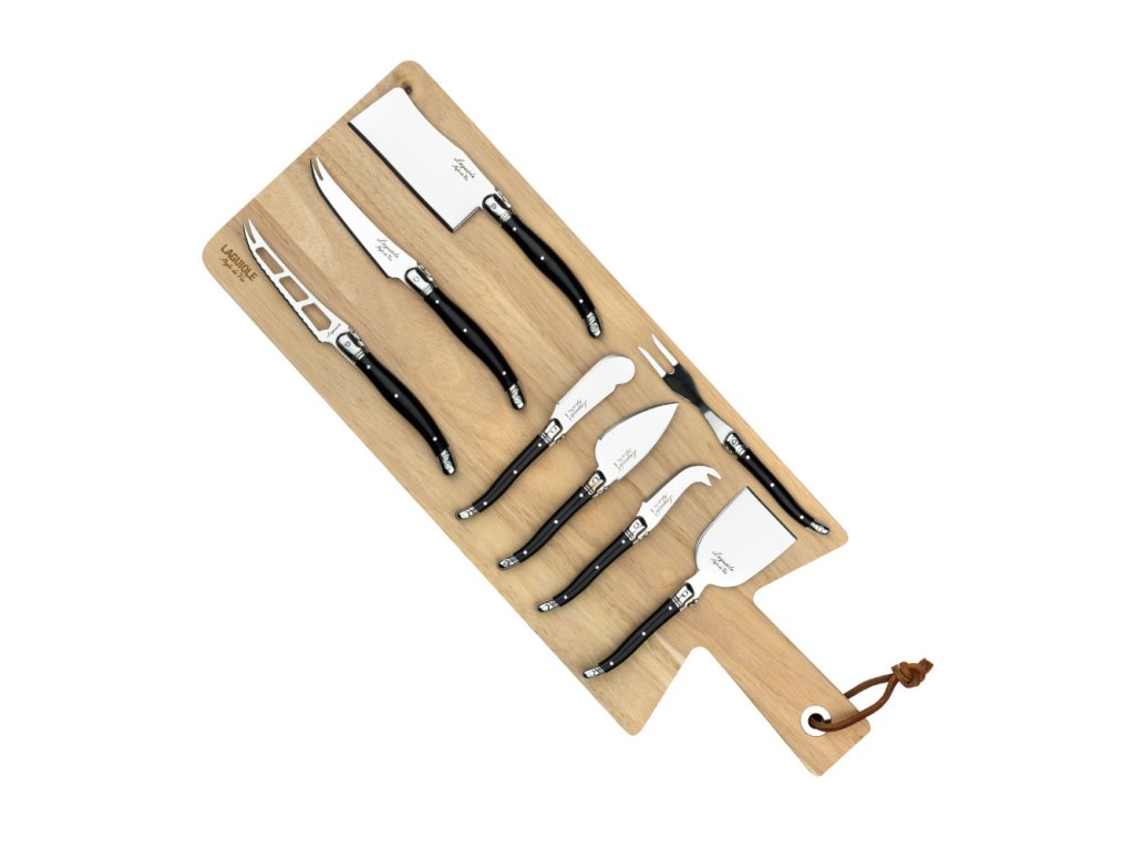 LAGUIOLE Premium - nože na sýr 8 ks, rukojeť černá - s dřevěným prkénkem