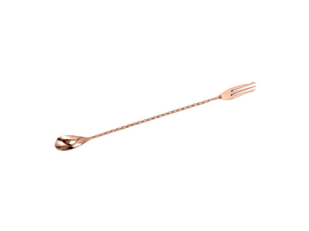 Lžička barmanská s vidličkou 40 cm, měď, BPR-40M