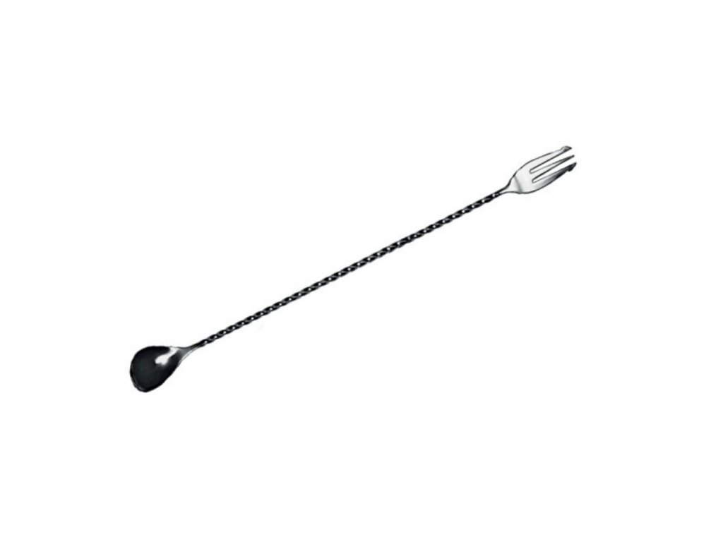 Barmanská lžička s vidličkou jsou velmi důležitým a v některých případech až nezbytným pomocníkem při práci s šejkrem a mícháním drinků. Vyrábí se kvalitní nerezové oceli, která dodává odolnost a dlouhodobou výdrž.