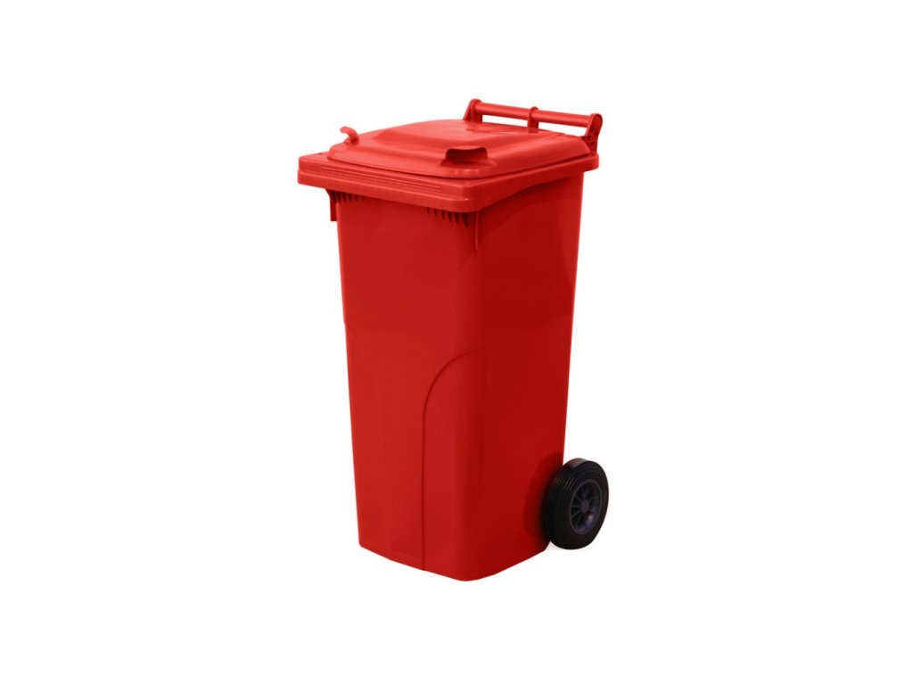 Klasická plastová popelnice o objemu 120 litrů na dvou kolečkách s madly pro snadnou manipulaci.