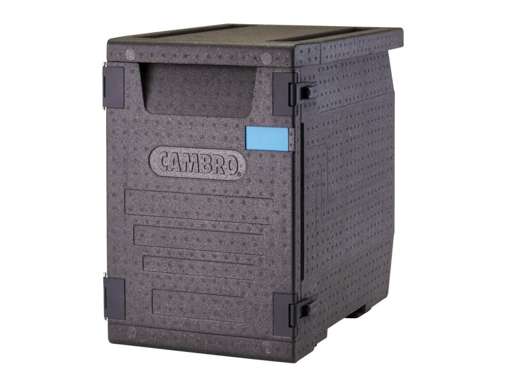 Termobox s předním plněním a 6 kolejnicemi renomovaného výrobce CAMBRO je jedním z nejlepších produktů pro přepravu pokrmů na trhu. Boxy vynikají svou odolností, lehkostí a disponují 6 vestavěnými kolejnicemi, které nelze rozšířit ani vyjmout. Kolejnice jsou přizpůsobeny pro plechy 60 × 40 cm a mají mezeru 6 cm. Díky důmyslné konstrukci boxu jsou boxy stohovatelné s ostatními termoboxy CAMBRO a ergonomická držadla po všech stranách boxu ve spojení s plně otevíratelnými dvířky (270°) zajišťují jednoduchou nakládku a vykládku pokrmů. Termoboxy jsou stohovatelné, odolné vůči mastnotě či chemikáliím a můžete je mýt v myčce nádobí. Lze je použít i s ohřívacími a chladícími vložkami.