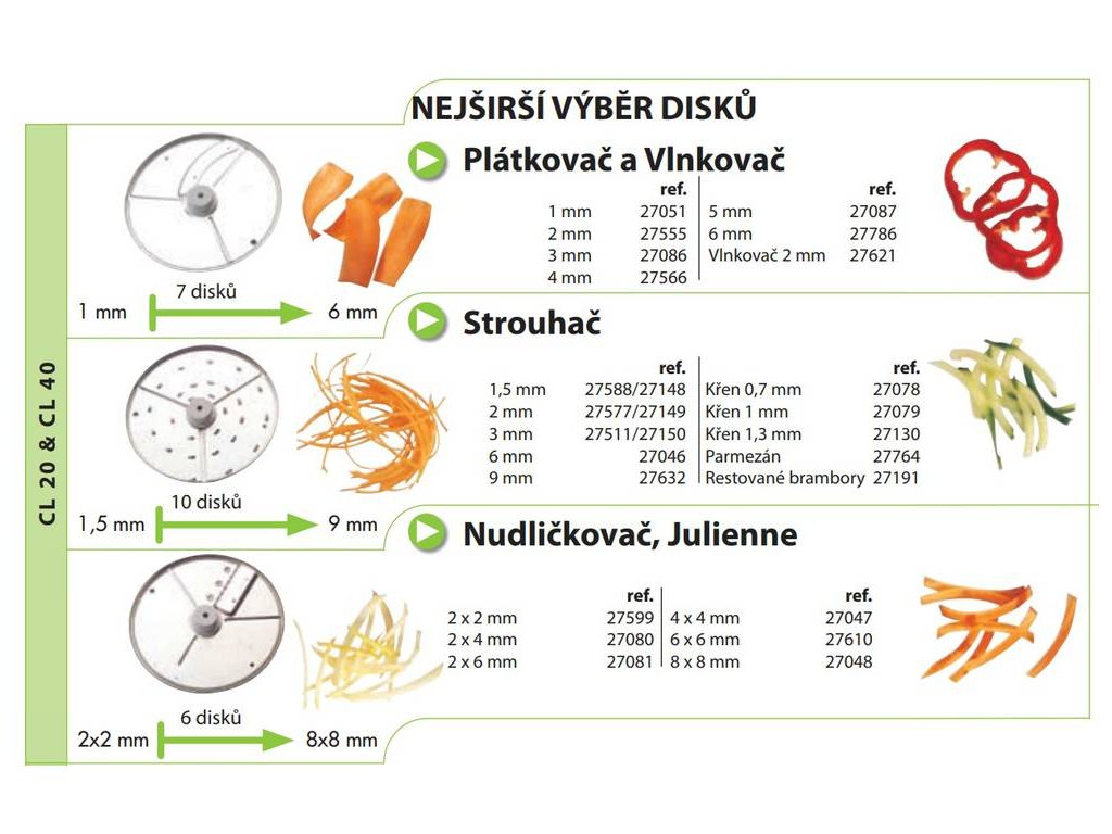 Disky nejsou součástí zařízení a musí se objednat samostatně. * Na výběr až z 23 disků – kompletní nabídka disků: DISKY ROBOT COUPE