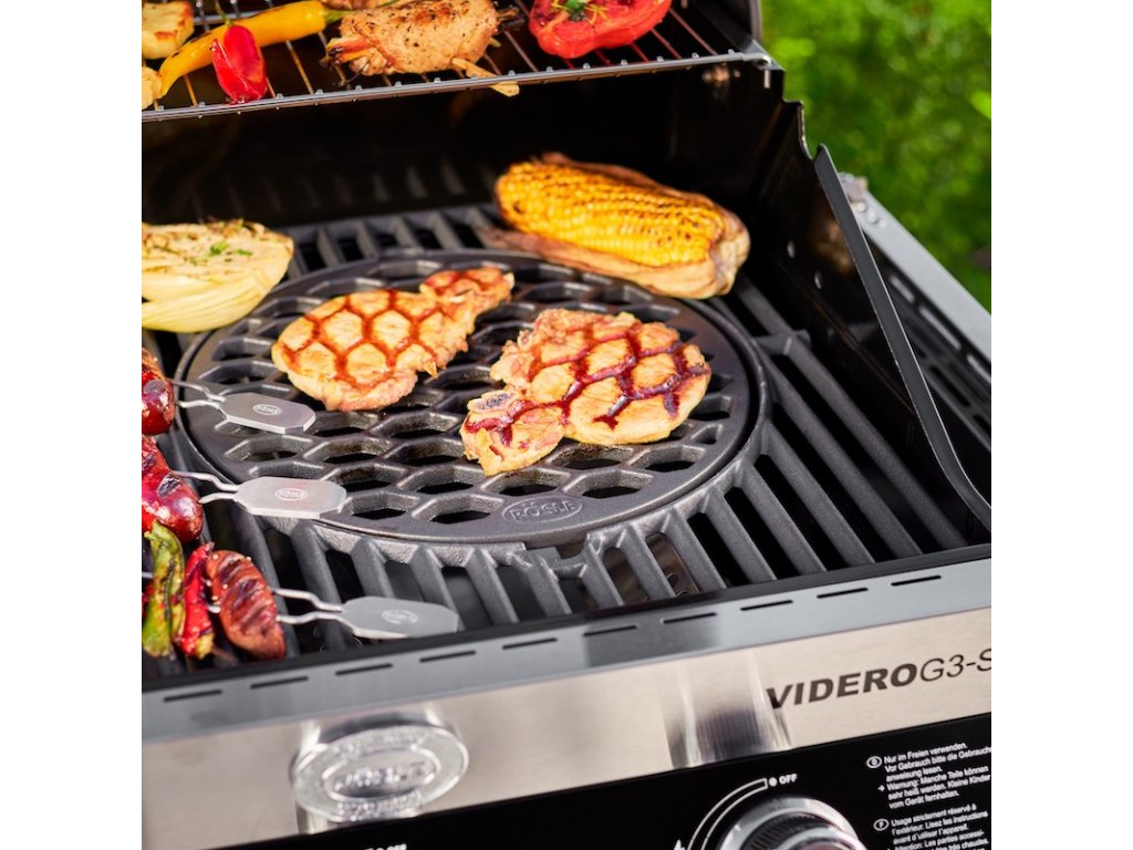 RÖSLE Videro G3-S Vario+, Gril plynový, 60 x 45 cm, litinový Tří hořákový gril 3 x 3,5 kW, Prime zona, postranní hořák + Rotissere Zdarma