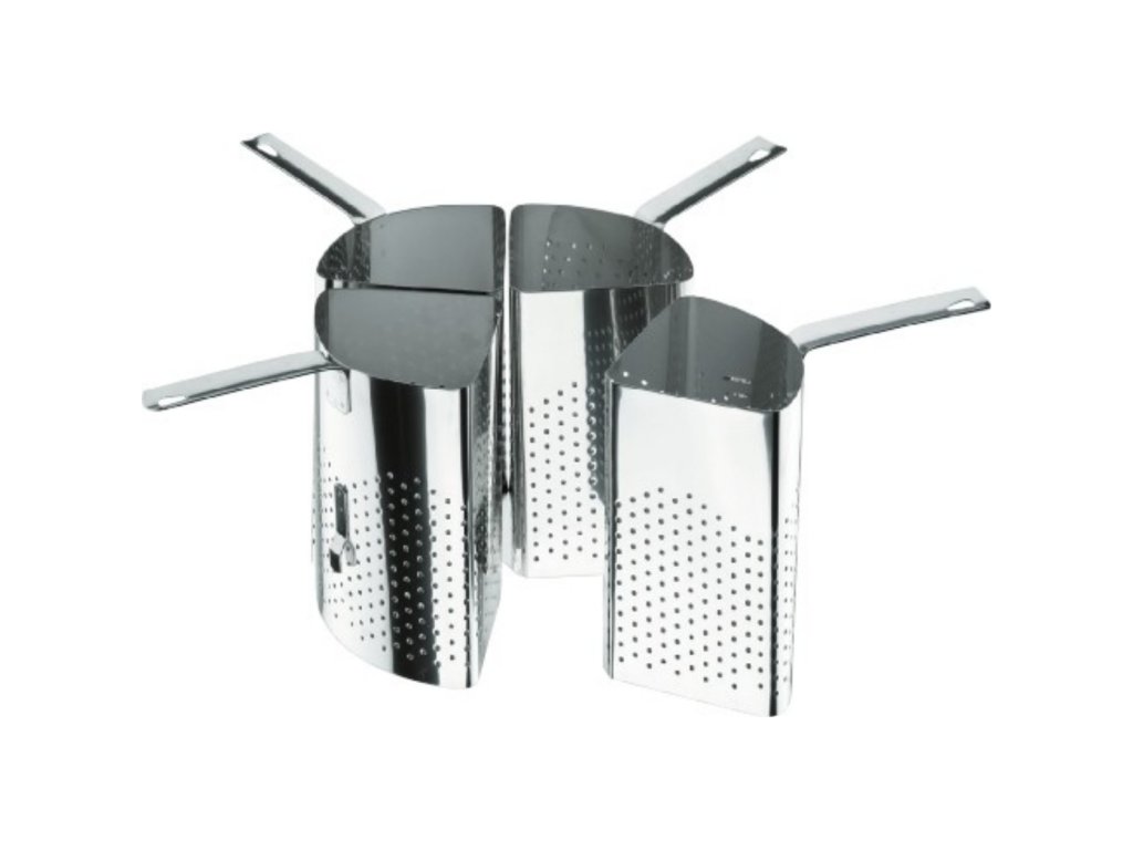 Profesionální nerezová vložka pro vaření těstovin v hrncích o průměru 40cm. Vložka je vyrobena z kvalitního nerezu 18/10, je opatřena háčkem pro uchycení na hranu hrnce a děrovaná otvory o průměru 3,5mm.
