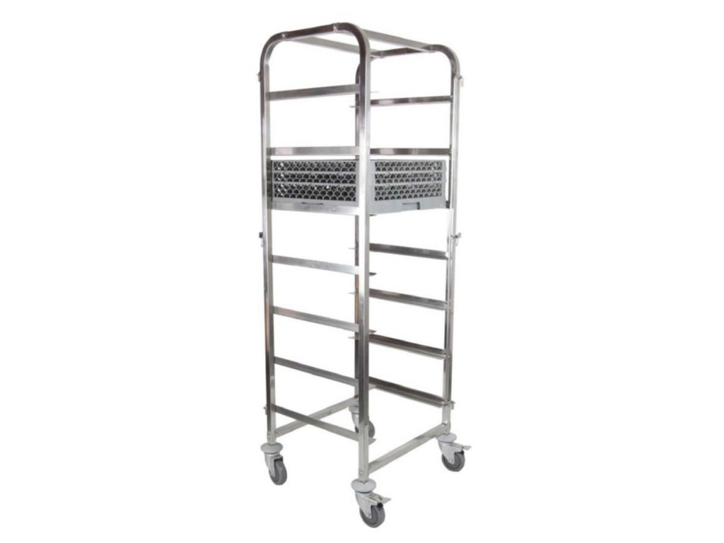 Rozměry: 700 x 630 x 1700, počet vsunů: 7. Nerezové provedení. Oboustranné zabezpečení proti vypadnutí koše. 2 kolečka s brzdou.