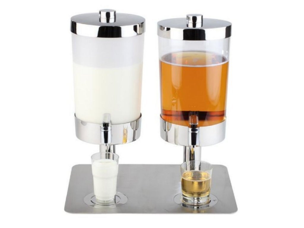 Zásobník na mléko v dvojím provedení o objemu 6 l se skvěle hodí do různých bufetů, rautů, švédských stolů. Chladící vložka v základně se postará o to, aby vaši hosté vždy dostali příjemně vychlazený nápoj a byli tak spokojeni se servisem. Jedna nádoba je matná (ideální pro mléko) a druhá čirá (například pro džus).