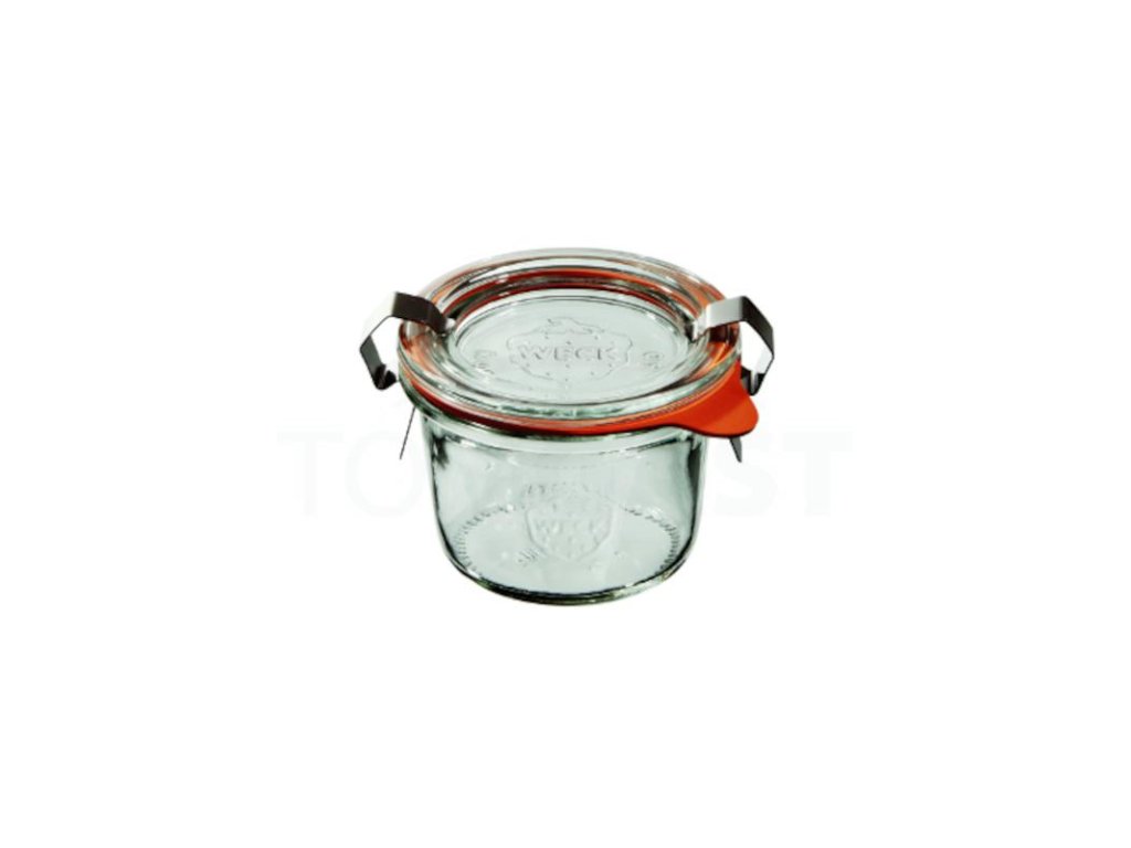 Sklenice WECK Mini Sturz 80 ml set s víčkem, těsněním a 2 sponami